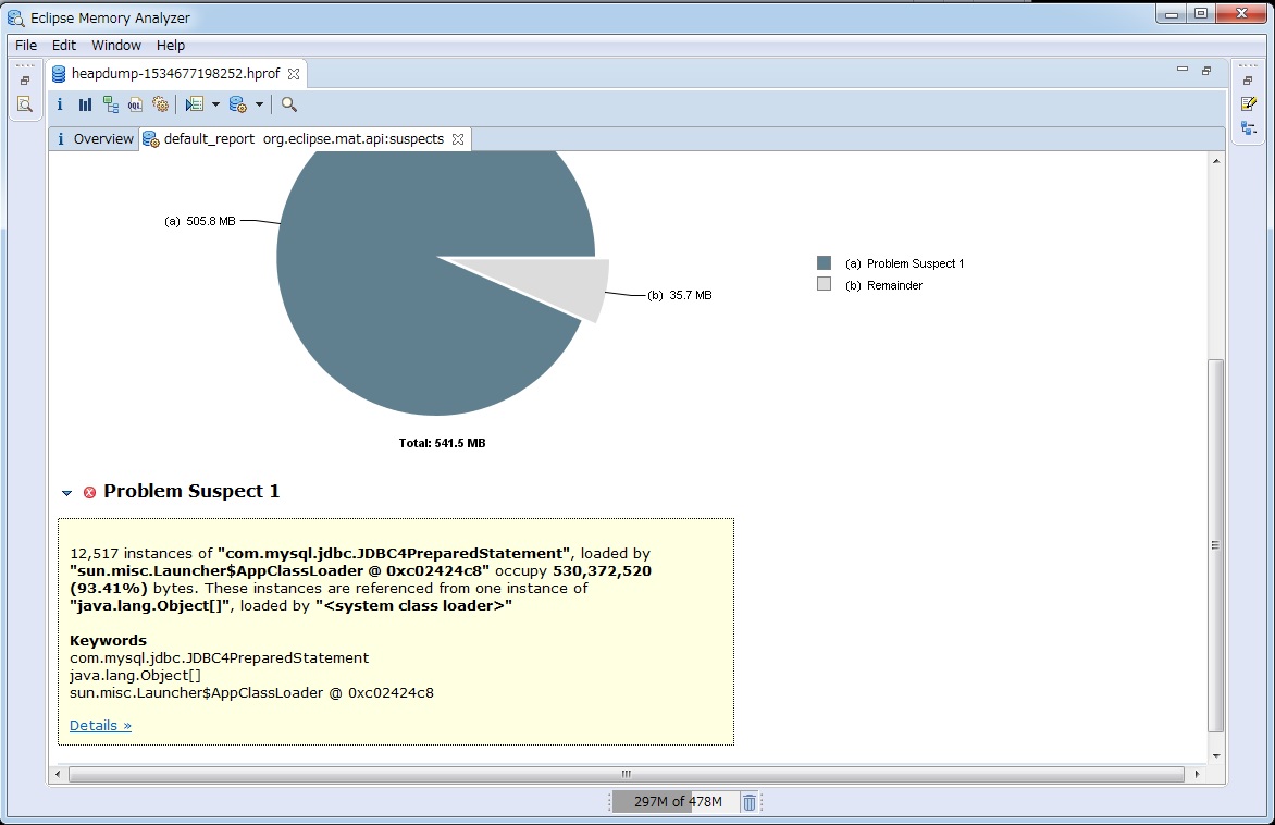 通过这个工具的提示,发现在运行一段时间后,内存中居然驻留了1万多个JDBC4PreStatemant实例,我去。。。。多少年了这个项目怎么活到现在的。。。