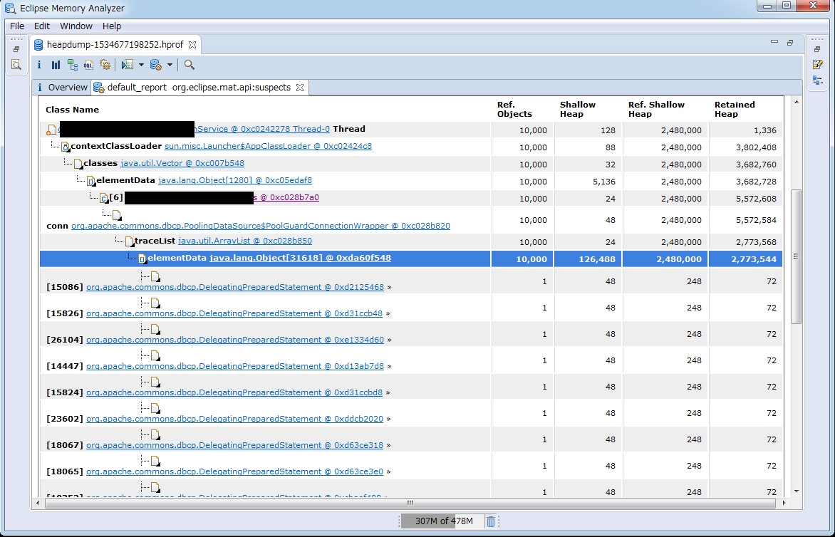 2,但是后来使用MAT一看,立即发现了这个data[]有问题。并不是我们缓存处理的内容,而是数据库链接没有正常关闭的问题。代码BUG